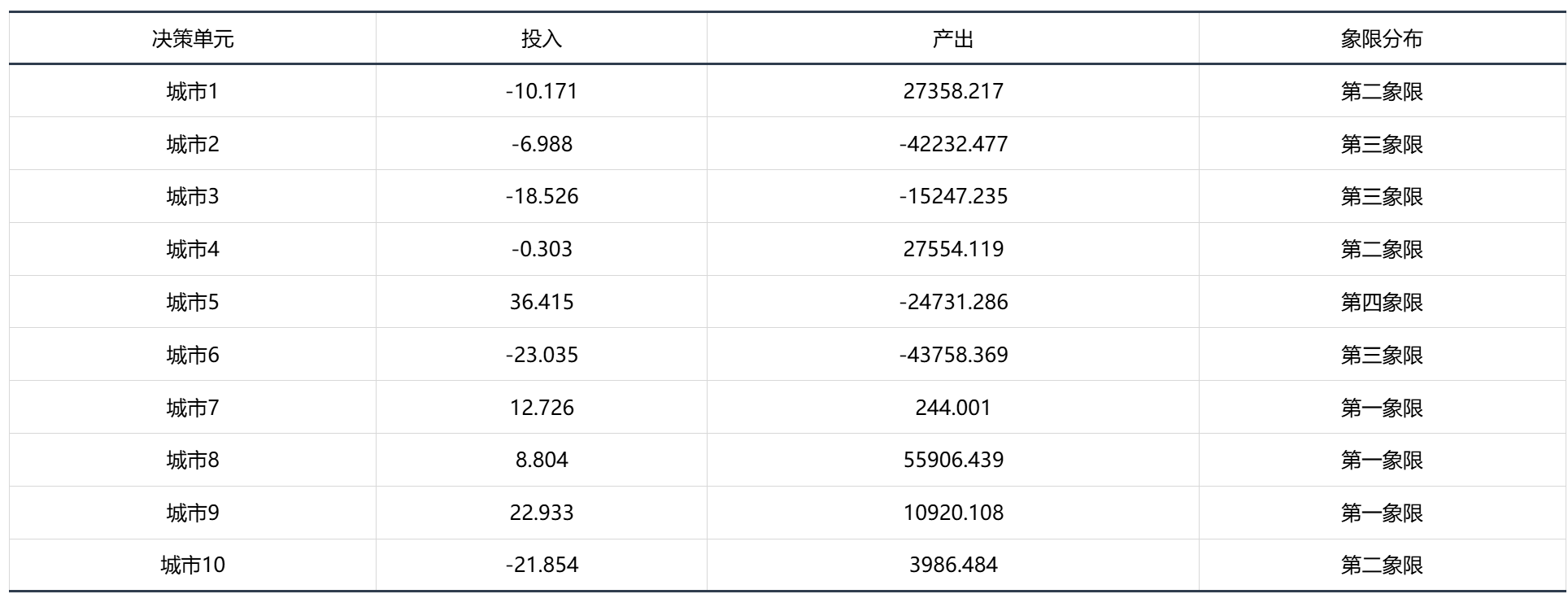 图表说明:投入产出象限图利用 PCA 降维方式把投入、产出指标进行单维化,进而通过象限图的方式呈现决策单元的空间分布,以下为各个象限的意义: