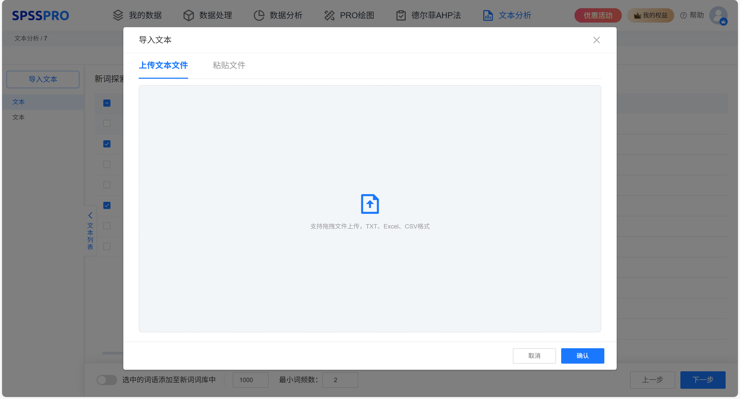 (1.1)导入文本支持两个方式:文件上传和粘贴文本;