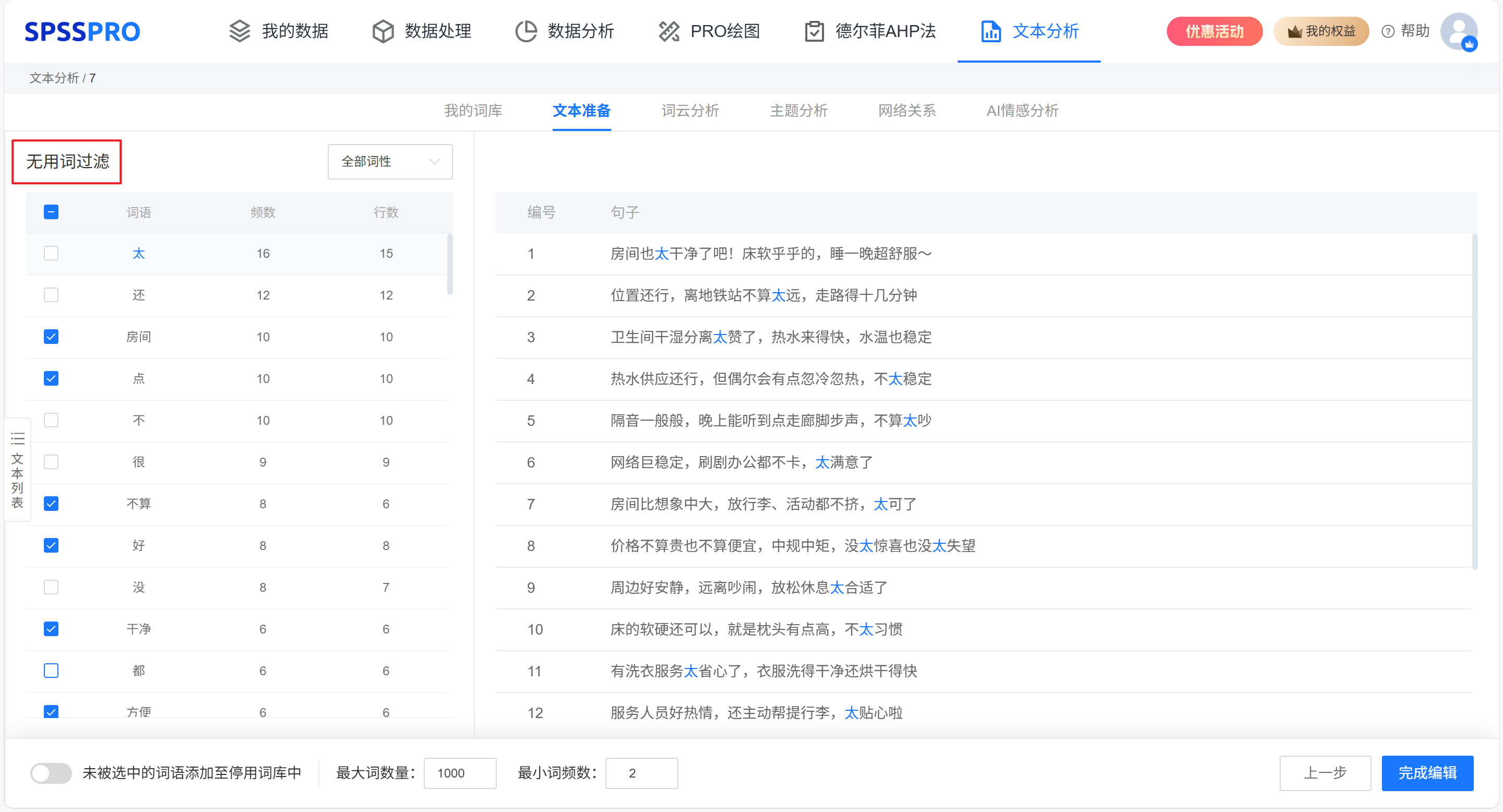 - 无用词过滤:可自行对无用词进行去除,减少数据噪音。